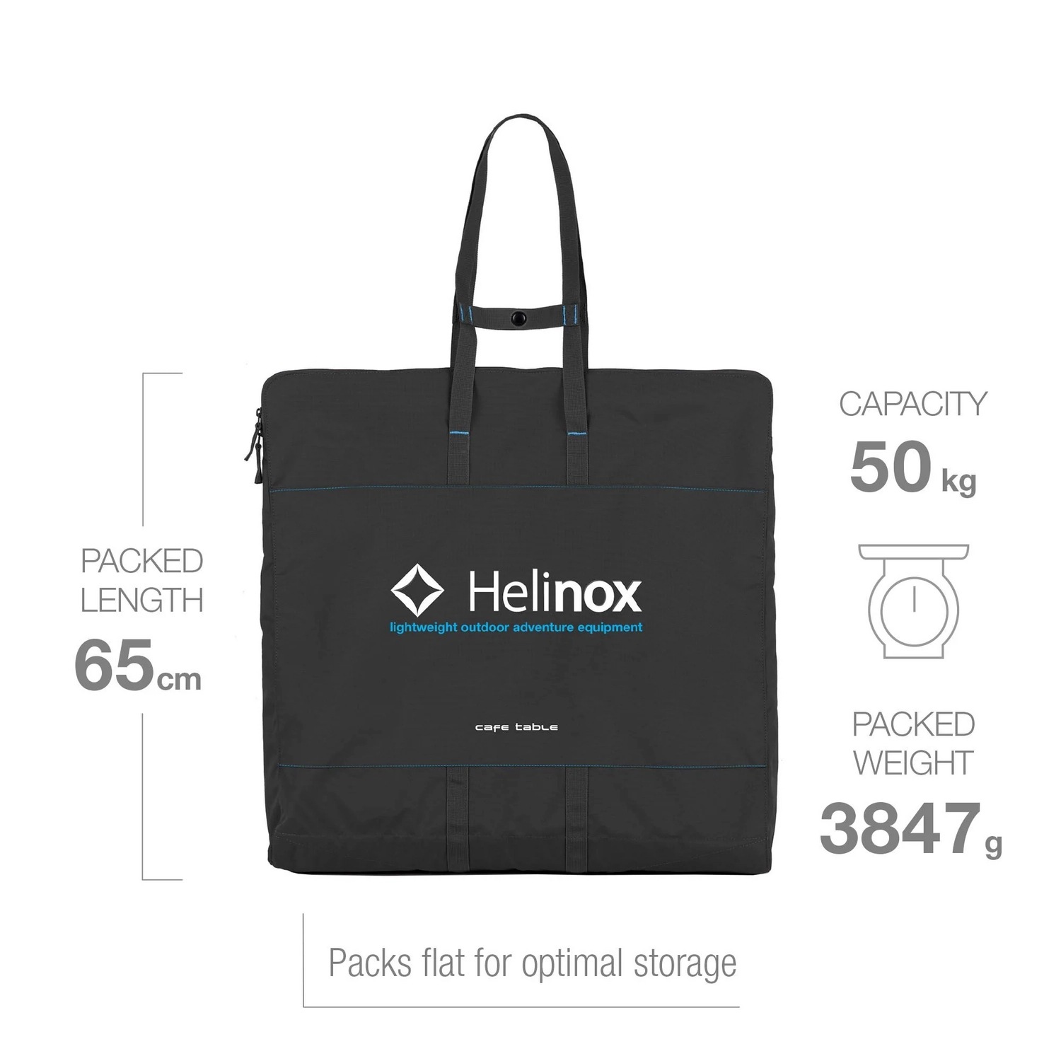 De Campingtafel Helinox Café Table Black is een hoogwaardige tafel die speciaal is ontworpen voor kampeerders. Dit product is vervaardigd door het gerenommeerde merk Helinox en is uitgevoerd in een stijlvolle zwarte kleur. De tafel is gemaakt van duurzaam kunststof en maakt deel uit van de Café Table-serie. Dankzij het inklapbare ontwerp is deze tafel zeer gemakkelijk te vervoeren en op te bergen. Het product weegt slechts 3,51 kg en heeft afmetingen van 60 x 60 x 68 cm. Bij het inklappen van de tafel meet deze 65 x 61 x 6 cm. Het frame van de tafel is vervaardigd van DAC Aluminum en heeft een blauwe kleur.